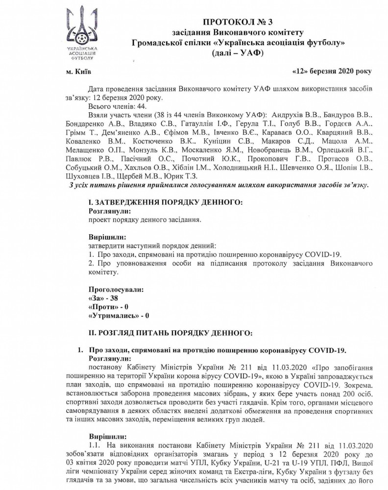 Протокол засідання Виконавчого комітету УАФ